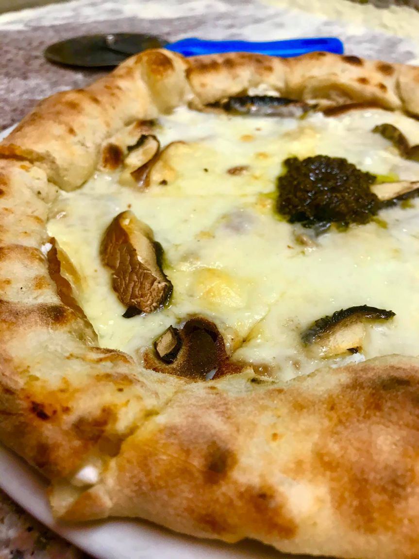 küüslauguga või punega/ with garlic or oregano / Пицца хлеб с чесноком и орегано Margherita 10.- Tomatikaste, fior di latte mozzarella juust, basiilik Homemade tomato sauce, fior di latte mozzarella, basil Томатный соус, сыр моцарелла и свежий базилик Cotto e Funghi 13.- Tomatikaste, fior di latte mozzarella sink, šampinjonid Homemade tomato sauce, fior di latte mozzarella, ham, mushrooms Tоматный соус, сыр моцарелла, ветчина, шампиньоные помидоры, сыр пармезан Ai Formaggi 13.- Tomatikaste, mozzarella ja erinevate juustudega Homemade tomato sauce, fior di latte mozzarella, different cheeses Пицца с разными видами сыра и томатной пастой Salame e Gorgo 14.- Tomatikaste, fior di latte mozzarella, salaami, gorgonzola juust Homemade tomato sauce, fior di latte mozzarella, salami, gorgonzola cheese Tоматный соус, сыр моцарелла, колбаса салями Capricciosa 15.- Tomatikaste, fior di latte mozzarella juust, artišokid, sink, šampinjonid, mustad oliivid Homemade tomato sauce, fior di latte mozzarella, artichokes, ham, mushrooms, black olives Tоматный соус, сыр моцарелла, артишоки, ветчина, чёрные оливки, шампиньоны Romana 14.- Tomatikaste, fior di latte mozzarella, anšoovis, pune, kappar, mustad oliivid Homemade tomato sauce, fior di latte mozzarella, anchovies, cappers, oregano, black olives Томатный соус, сыр моцарелла, анчоусы, орегано, каперсы, чёрные оливки Contadina 14.- Tomatikaste, mozzarella, praetud köögiviljad Homemade tomato sauce, fior di latte mozzarella, pan fried vegetables Томатный соус, сыр моцарелла Crudo 15.- Tomatikaste, fior di latte mozzarella juust, toorsink, šampinjonid, parmesani juust Homemade tomato sauce, fior di latte mozzarella, cured ham, mushrooms, parmesan cheese Tоматный соус, сыр моцарелла, сыровяленая итальянская ветчина-прошутто, шампиньоны Piccante 15.- Vürtsikas Calabria salaami, tomatikaste, fior di latte mozzarella juust, sibul, vürtsikas kaste Tomato sauce, Calabria spicy salame, fior di latte mozzarella, onion, spicy vegetable sauce Томатный соус, сыр моцарелла, калабрийская сыровяленная колбаса с острым перцем, лук, oстрая сальса Finlandia 16.- Tomatikaste, fior di latte mozzarella juust, sink, salaami, peekon, vorstiliha Homemade tomato sauce, fior di latte mozzarella, ham, salami, bacon, pork sausage meat Tоматный соус, сыр моцарелла, ветчина, колбаса салями, бекон, свиная колбаса Tonno 14.- Tomatikaste, fior di latte mozzarella, tuunikala, sibul, mustad olivid Homemade tomato sauce, fior di latte mozzarella, tunafish, onion, black olives Tоматный соус, сыр моцарелла, тунец, лук, чёрные оливки Burratina 16.- Värske Burrata mozzarella juust, tomatikaste, basiilik, oliivõli, kirsstomatid Fresh burrata mozzarella (not cooked), tomato sauce, basil, extra virgin olive oil, cherry tomatoes Томатный соус, Буррата моцарелла, базилик,оливковое масло экстра класса, томаты черри Pescatore 16.- Tomatikaste, fior di latte mozzarella ja erinevad mereannid Homemade tomato sauce, fior di latte mozzarella and different fresh seafood Томатный соус, сыр моццарелла и свежие морепродукты Ariccia Porchetta Pizza 15.- Porchetta liha, suitsutatud juustu, fiordillatte mozzarella ja friarielliga Porchetta, smoked cheese, fiordilatte mozzarella and friarielli Поркетта, Копченая моцарелла, брокколи рапини Bella Napoli 16.- Fior di latte mozzarella juust, kirsstomatid, rukola, itaalia toorsink, parmesan Fior di latte mozzarella,cherry tomatoes, rocket salad, italian cured ham, parmesan Помидоры черри, сыр моцарелла, рукола, сыровяленая итальянская ветчина-прошутто, сыр пармезан Mortadella 14.- Suitsumozzarella juust, mortadella Bologna sink, pecorino juust, pistaatsia, stracciatella juust Smoked mozzarella, mortadella Bologna ham, pecorino cheese, pistachio, stracciatella cheese Копченая моцарелла, мортаделла Болонья, сыр пекорино, фисташки Tartufo 15.- Suitsumozzarella juust, mozzarella juust, artišokid, portobello seened,trühvlikreem Mozzarella, smoked mozzarella, portobello mushrooms, artichokes, truffle cream моцарелла, копченая моцарелла, грибы портобелло артишоки, трюфельный крем Tronchetto 16.- Calzone pitsa täidetud mozzarellaga, peal rukola, itaalia toorsink, parmesan Calzone with inside mozzarella,fresh on top rocket salad, italian cured ham, parmesan Кальцоне с моцареллой , сверху рукола, сыровяленая итальянская ветчина-прошутто, сыр пармезан Täiendav informatsioon