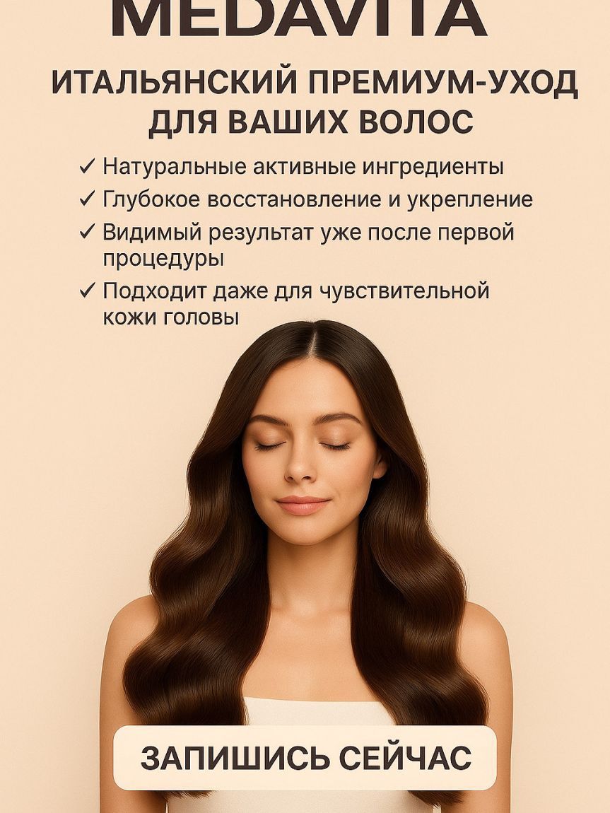 Комплексная процедура по восстановлению роста волос «Мedavita». Здоровье и сила ваших волос начинается здесь!