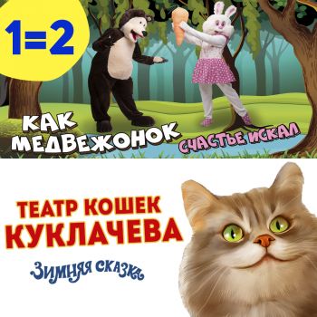 Kaks etendused ühe hinnaga! Kuklachevi kasside teatri etendus ja lasteetendus «Kuidas karupoeg õnne otsis»