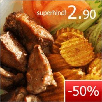Tõeliselt maitsev pakkumine! Ehtne seašašlõkk, ahjukartul, värske salat, adžika, lavašš – ainult 2.90 eurot (tavahind 5.80 eurot)!